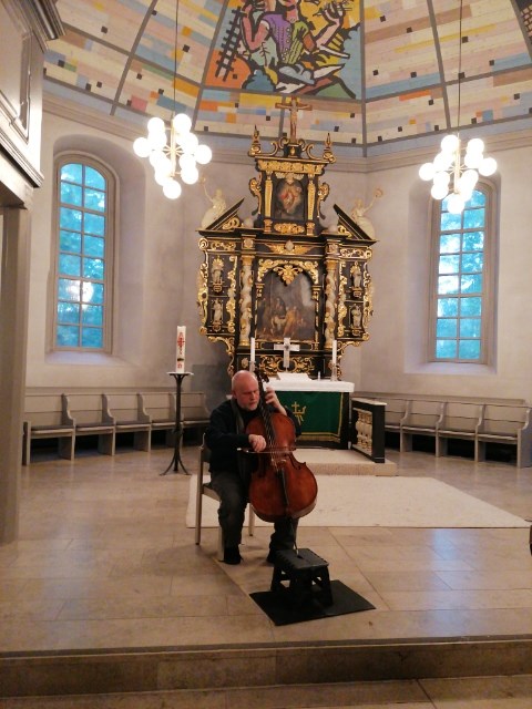 Warme und wohlige Klänge waren am letzten Septembersonntag in der Martin-Luther-Kirche zu hören. Kirchengemeinde und Förderverein Martin-Luther-Edemissen e. V. hatten den in Schweden gebürtigen und in Berlin lebenden Solisten Ludwig Frankmar mit seinem Barockcello eingeladen. Das harmonische Programm mit Cello-Solo-Werken von Degli Antonii (1636 – 1698), Marin Marais (1656 – 1728) und Georg Philipp Telemann (1681 – 1767) brachte immerhin 35 Besucher/-innen in eine sonnig-herbstliche Meditationsstimmung mit Wohlfühlcharakter.